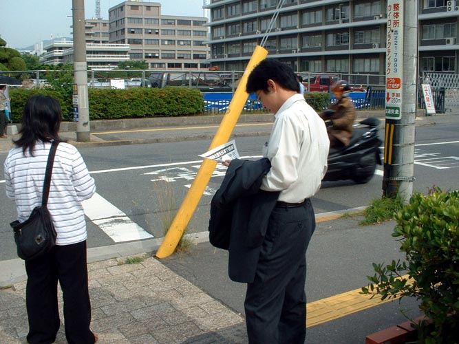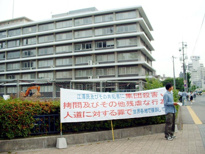 连日来,学员们在市役所、裁判所等门前以发传单、拉横幅、图片展等方式向人讲法轮功在中国无辜遭受迫害的真象,使政府职员、法律界人士及时了解到真象:江××及其帮凶践踏人权,对法轮功学员犯下滔天大罪,现在已被世界20多个国家及地区的法轮功学员起诉,天网恢恢,疏而不漏,行恶者终将被绳之以法。