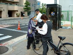 ![]() 学员们在裁判所门前讲真象 | ![]() 学员向路人讲真象 |
