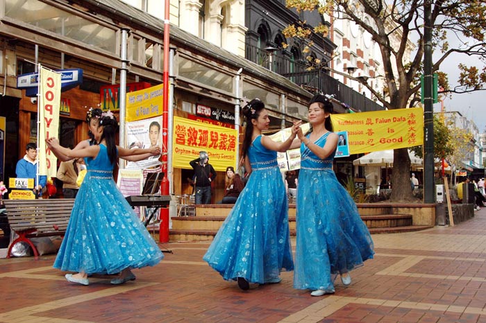 【明慧网2005年6月13日】2005年6月11日,新西兰法轮功学员在首都惠灵顿市中心古巴街举办义演营救在中国因中共迫害法轮功而身处困境的孤儿。观众深为感动,纷纷提出出资帮助营救受迫害孤儿。来自新西兰各地的法轮功学员表演了精彩的节目。学员们同时派发了揭露法轮功学员在中国大陆被迫害的真象资料。新西兰国家电视一台对此事進行了专题报导。
