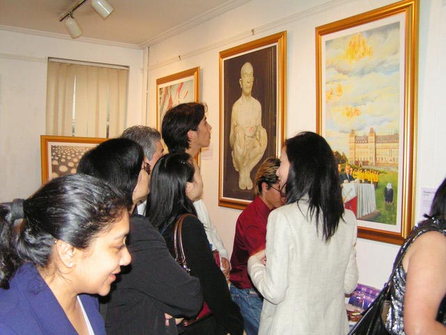 一位中年西方女性看了部份作品后,表示了对作品的赞赏,并询问此画展有否在其它地方展出。她感叹于在法轮功学员中,有那么多有才华的画家,并表示还会回来观画。