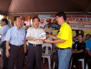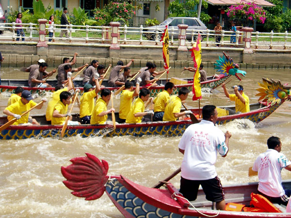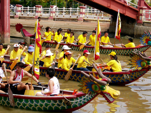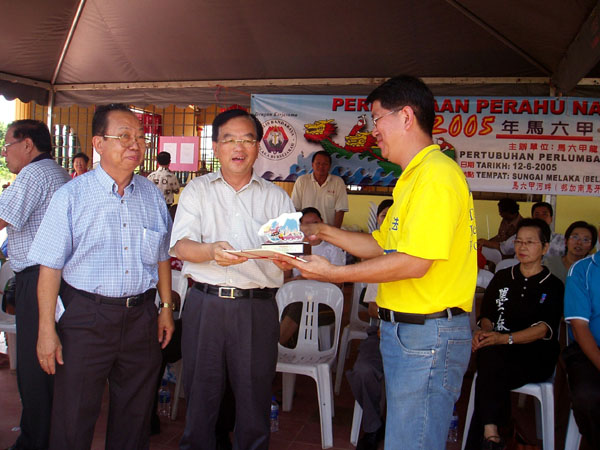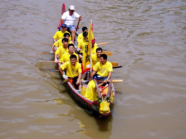 【明慧网2005年6月13日】一年一度的马来西亚马六甲龙舟锦标赛于2005年6月12日在马六甲河顺利展开,这是马来西亚法轮功学员第四次参与这项活动。此项活动的目地是发扬传统中华文化,共吸引了来自新马的16支队伍参加,其中包括马来西亚法轮大法弟子组成男、女队。