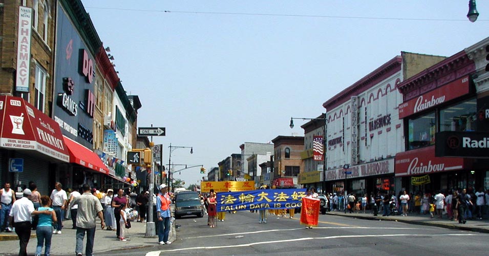 法轮功学员灿烂的游行队伍不仅把中国独特的传统文化和其他族裔人分享,更重要的是把法轮大法的美好带给了这里的人们。社区的人们都很愿意拿传单,了解法轮大法。