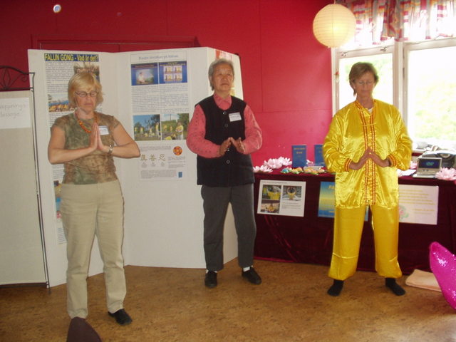 【明慧网2005年6月13日】二零零五年五月廿八日至廿九日,法轮功学员参加在乌德瓦拉市(Uddevalla)举行的“另类健康节(Alternative Health Fair)”活动,表演法轮功五套功法,并且向参观者介绍法轮功及正在中国发生的迫害真象。此外,学员们也设置了展板、图片海报、信息展位等。