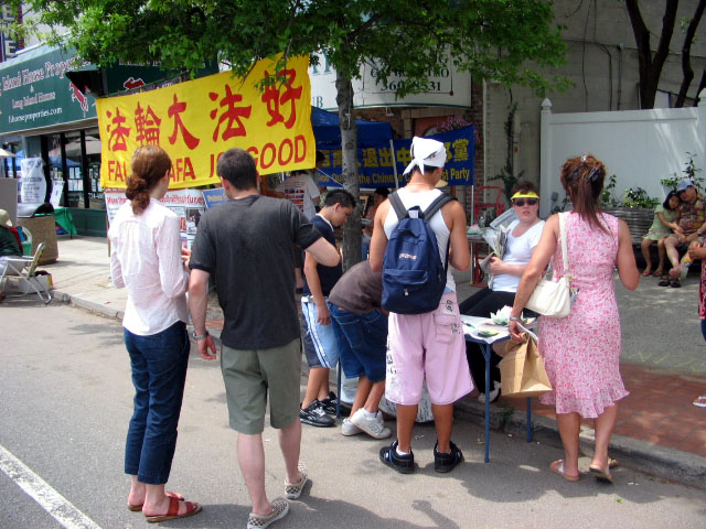 一位长岛居民听真象后对学员说:“世界各地媒体都在报道各地战争或杀人的事,而这么严重的迫害法轮功的事却没有媒体报道,太不公平了。”她还表示要在长岛州立大学附近帮助发真象资料,并带走了许多资料。