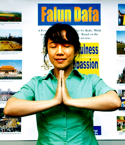 杰森介绍说,法轮功动作缓慢柔和,老少咸宜,孕妇也能炼。杰森说他的太太怀孕期间也一直在炼。他说:“炼功使我太太少受许多分娩的疼痛,并产下一个健康的婴儿。”