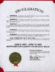 因此,我,北安普敦县长格兰•雷曼, 代表北安普敦县人民特此宣布2005年6月6日至12日为北安普敦县