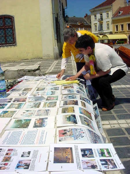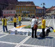 ![]() 学员们在广场上发放真象资料 | ![]() 学员们在广场上发放真象资料 | ![]() 人们纷纷停下来了解真象 |
