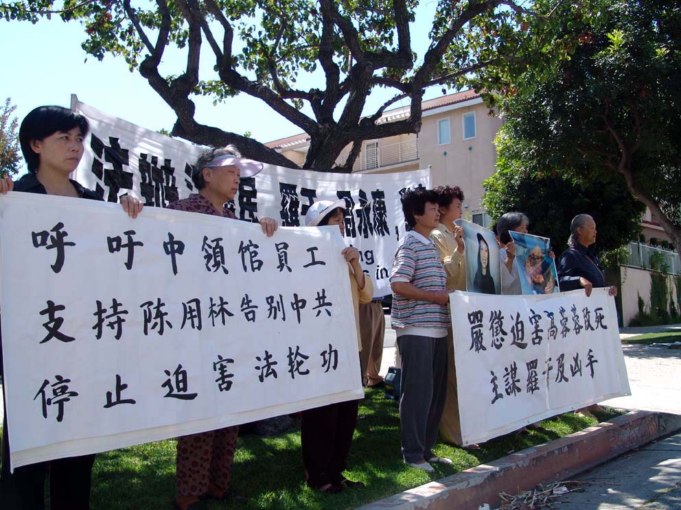 与会者打出“严惩迫害高蓉蓉致死主谋罗干及凶手”、“严惩毁容凶手唐玉宝、姜兆华”、“呼吁中领馆员工支持陈用林告别中共 停止迫害法轮功”等横幅,以及高蓉蓉的遗像和被毁容的照片。著名民运人士、《中国事务》网站主编伍凡、国际大赦组织克莱蒙学院分部负责人 Sarah Cook、法轮功学员代表吴英年、李有甫和 Brad Carson在集会上讲话。