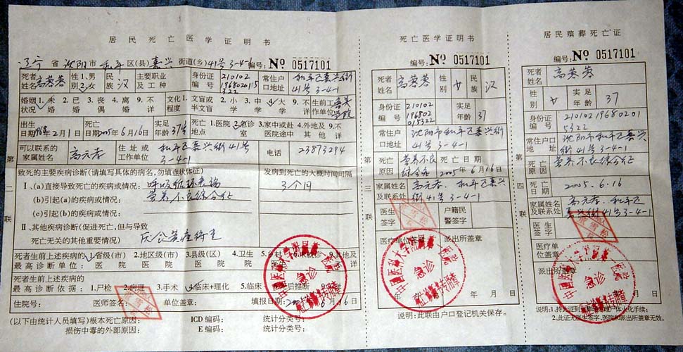 2005年6月16日,高蓉蓉在医大一院急诊室去世,年仅37岁。这些一直说“是上面没结案,这次没高蓉蓉什么事”的人,正对高蓉蓉的家人施加压力,急于火化遗体、销毁罪证。