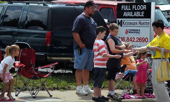 【明慧网2005年6月8日】一年一度的“老香尼节”节日游行(Old Shawnee Days Parade)于周六(2005年6月4日)在香尼市(Shawnee)举行,这是美国堪萨斯州最大的游行活动之一。堪萨斯法轮功学员参加了游行,并且派发了许多洪法资料。许多民众询问如何开始学炼法轮功。