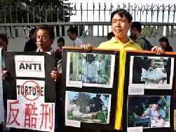 【明慧网2005年7月1日】据路透社6月30日报导,马来西亚法轮功学员30日在中共驻吉隆坡大使馆外请愿,抗议中共在中国虐待法轮功学员。学员手中的展板上写着:自1999年7月20日以来,已证实有2629名法轮功学员被