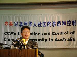 “在2003年中央防范和处理×教办公室的副主任袁靖(谐音)来澳洲时告诉我,国内法轮功有6万人还在受到迫害,其中三万关在监狱里和劳改营里,三万多被地方政府、区政府、街道监视居住和洗脑教育,这个数字使我很震惊。中共自称对一般法轮功学员采用团结、教育、转化的政策,所谓团结教育就是洗脑,就像教育中共内部的党员一样。从六四以来,(中共)進行了反自由化教育,针对的是民运,后来江的三讲、三个代表、胡锦涛的保先教育,从去年年底开始,在我出来之前,悉尼总领馆还让我写了一份总结报告:悉尼总领馆保先教育取得了重大進展,保先教育告一段落。由此可看出中共的本质。”