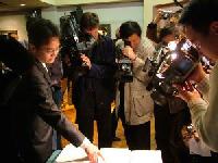 ![]() 陈用林举行新闻发布会及华人座谈会 | ![]() 陈用林向媒体展示间谍线人提供给中领馆的法轮功学员个人资料 |