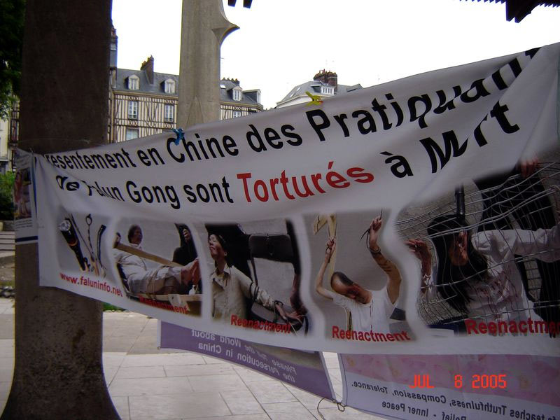 ![]() 模拟酷刑演示令人震惊 | ![]() 揭露迫害真象的横幅 |