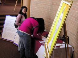 ![]() 观众在留言簿上签字留言 |