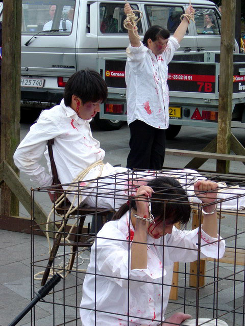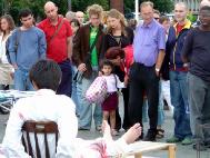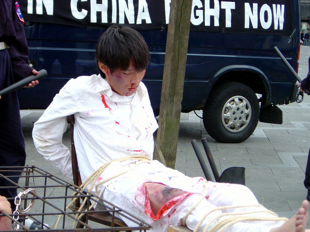 这次的反酷刑展,在法轮功学员们真人演示酷刑的同时,还展出了大量内容丰富的图片,从法轮功是什么,到发生在中国的迫害,到迫害在海外的延伸。六年的残酷迫害,到7月15日止,明慧网上公布的遭迫害致死的学员人数已达2684人,实际死亡人数应高达数倍于此。在法轮功学员六年不停息的呼吁和讲真象中,这场迫害已渐为世界所瞩目,反迫害、反暴力的声音在逐渐响亮。