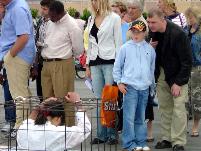 一位来自大陆的中国同胞,和一位西人学员进行了长时间的交谈。他在思考学员告诉他的真象,虽然在中共的恐怖威胁下,他和大部份中国同胞一样,心里有着深深的恐惧。当他和学员交谈时,仍然是惊魂未定的环顾左右,怕被媒体的摄像机照进镜头。当他收下真象光盘时,他诚恳的说:明天我就要回中国了,今天晚上我会在旅馆把它们看完的,但我不敢带回去。我们深深的祝愿这位可贵的中国同胞,大法的真象将会使你拒绝恐惧,变得坚强,正义将会在你善良的心中成长,并带给你身边的中国同胞们。