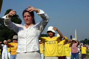 美国国会山庄前的大炼功2005年7月21日,上千名来自世界不同国家的法轮功学员汇集在美国首府华盛顿DC,以集会、游行、和烛光守夜等各种方式,揭露和谴责中共迫害法轮功的恶行,同时呼吁各界制止中共的恐怖主义行为,结束这场仍在继续的,中共对法轮功的迫害。