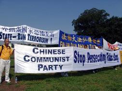 参加集会的法轮功学员重申,中共对法轮功的迫害,完全建立在谎言之上。6年来,海内外法轮功学员坚韧不拔的讲清真象,使越来越多的人们看清了中共的邪恶,脱离它,反对它,不再为虎作伥。
