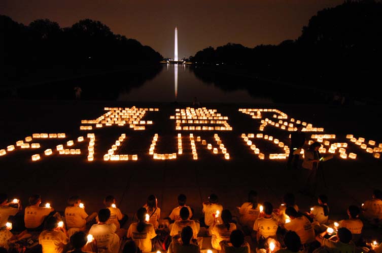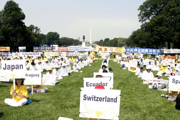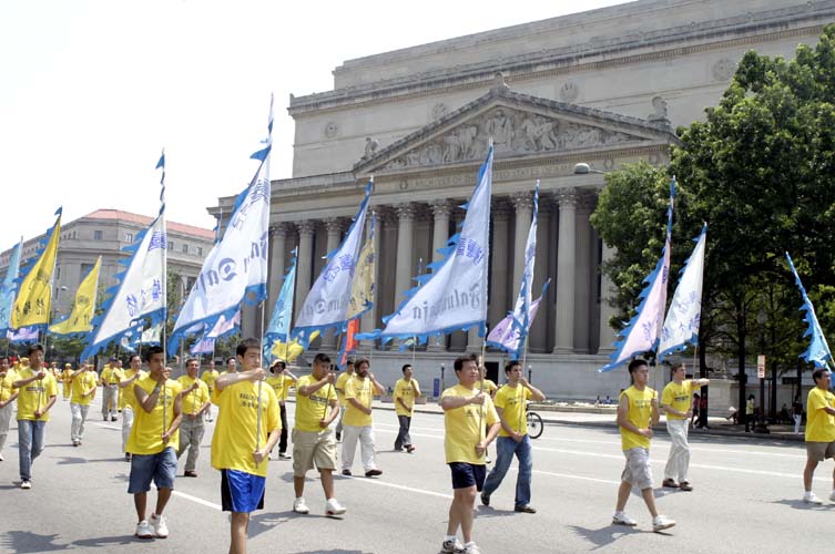 【明慧网2005年7月23日】(明慧记者黄凯莉华府报导)2005年7月21日,上千名来自世界不同国家的法轮功学员汇集在美国首府华盛顿DC,以集会、游行、和烛光守夜等各种方式,揭露和谴责中共