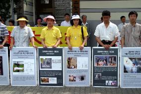 2005年7月20日,在中共邪党迫害法轮功长达6年之际,韩国法轮大法学会在首尔孝子洞中国大使馆前主持集会,谴责中共恶党对法轮功的迫害,并呼吁制止迫害。