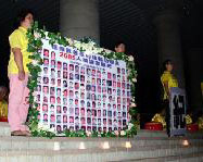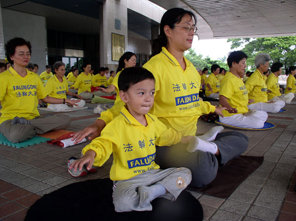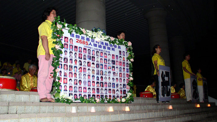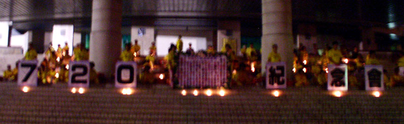 2005年7月20日,台湾屏东法轮功学员聚集在屏东县立体育馆前,以烛光静坐的方式,悼念6年多来被迫害致死的2719名法轮功学员。从下午5点开始,屏东法轮功学员以祥和的炼功展示法轮大法的美好;晚间7点,学员们点亮烛台,为坚持真理、不畏生死的中国法轮功学员静坐请愿。现场学员并清唱起“请与我比邻而坐”:“请与我比邻而坐,在寂静之处。微闭双目,发出我们心底的呼唤。为制止酷刑凌辱,为结束疯狂屠戮。为停止一切迫害,心慈意猛何惧苦。于无声处,让我们同将历史改变。于无声处,让我们同将众生救度。同将众生救度。”