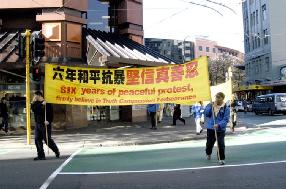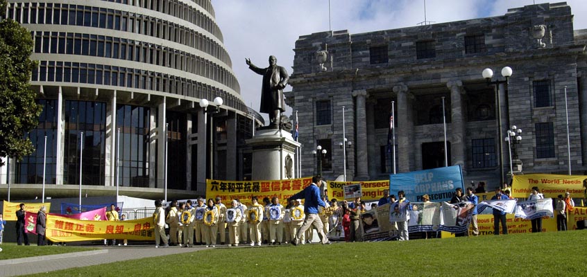 7月23日,新西兰首都惠灵顿发行量最大的报纸Dominion Post正面报道了法轮功学员于7月22日在惠灵顿举行的抗议游行。报道用“静静的抗议(Silent Protest)”为题,并配以法轮功学员手捧被迫害致死的同修的照片。报道说来自汉密尔顿80岁的法轮功学员,手中捧着遗照,照片中的女士因信仰法轮功被中国政府(中共)迫害致死。报道还写道,来自全新西兰的法轮功修炼者聚集在惠灵顿,抗议中国政府(中共)的迫害,他们演示了功法,这些修炼者相信他们所炼的功法可以使人达到身体的健康和内心的平和。很多人拿着被迫害致死者的照片。