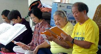 ![]() 和大家一起学法相互促进,是刘映谷(右一)生活中最愉快的时刻 |