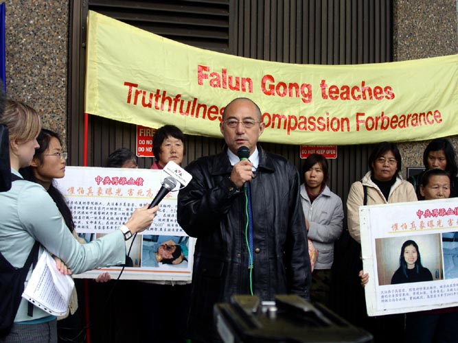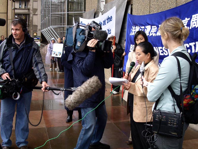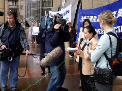 ![]() 学员们在世界反酷刑日举办活动 | ![]() 接受媒体采访 |