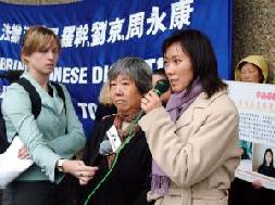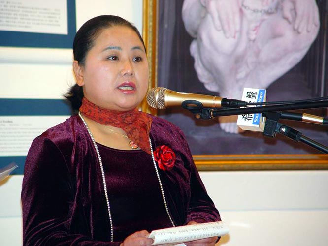![]() 大赦国际的代表吉尔帕翠克(Robyn Kilpatrick)发言 | ![]() 曾在中国因修炼法轮功受到严重迫害的画家章翠英女士发言 |
