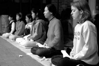 过了不久,十几个西人学员一个个被公安粗暴的带了进来,后来又将他们送往另一个拘留所。在路上,莎拉站起来用中文唱起了《得度》,刚开始几位车上的公安还恶脸相向的要她坐下闭嘴,但莎拉仍然坚持站着一遍又一遍的唱。最后,公安们一个个都沉静下来用心听着,还有一位公安,更是深深的被歌曲打动,偷偷擦拭着眼角的泪水,莎拉于是告诉他说:“我们来自世界各地,就是要告诉你们法轮大法好!现在你们知道后,一定要记得转告给家人与朋友。”