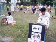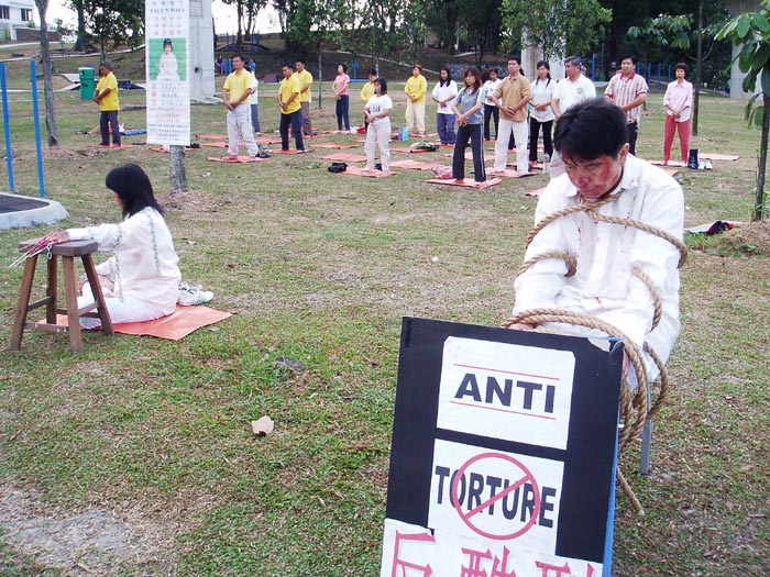 ![]() 集体炼功 | ![]() 反酷刑演示 |