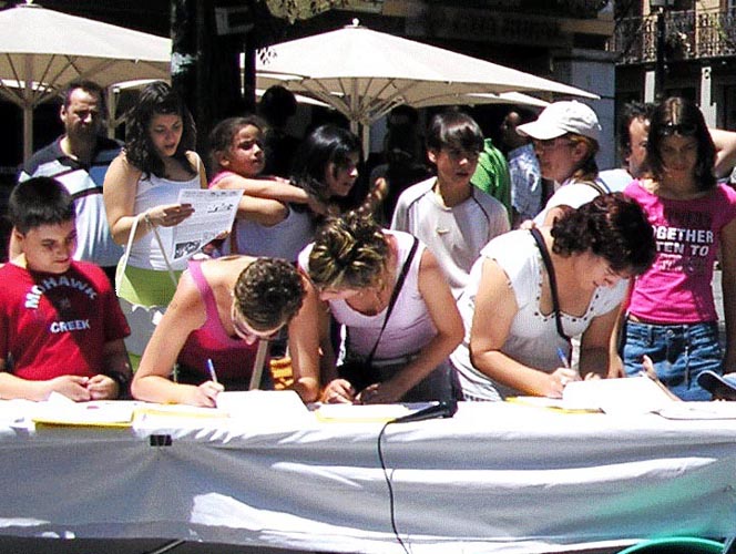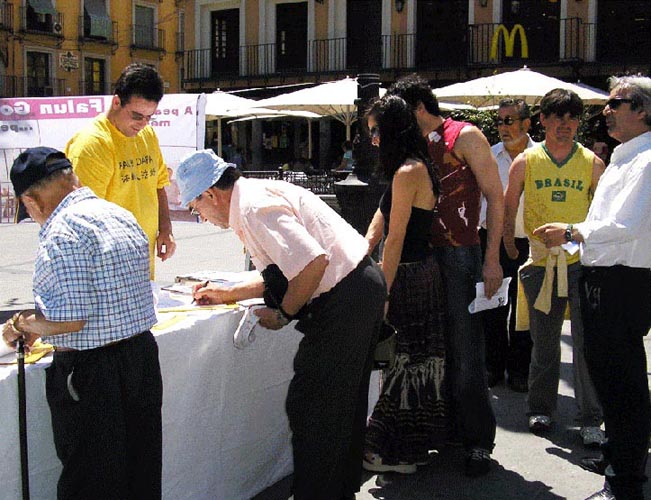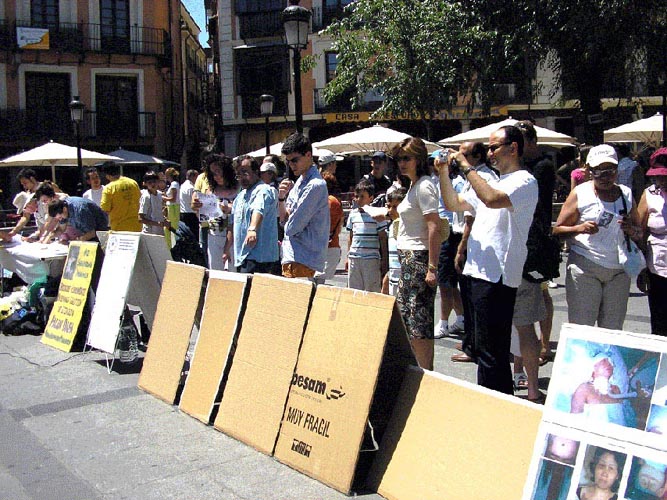 在国际反酷刑日期间,西班牙法轮功学员们再次来到这座古城。这已经是他们第六次来到这里洪法讲真象以及办图片展。但举办真人演示的反酷刑展在这里还是第一次。