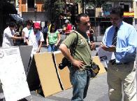 反酷刑展开始不久,一位60岁左右的老先生怒冲冲的来到扮演警察的学员面前,严厉的喝令道:“快解开她(扮演受酷刑的学员)的绳子!”扮演警察的中国学员连忙解释说:“我是在扮演警察,不是真的打她……”那位先生说:“那也不行,快把绳子解开!”说着自己动手要解开系在扮演受刑学员身上的绳子,学员告诉这位先生,我们是在演示现在正发生在中国的对法轮功学员的酷刑迫害,已经有两千多名法轮功学员被迫害致死,成千上万的法轮功学员还在遭受着残酷的酷刑折磨……,听着听着,这位先生的眼睛湿润了,他来到扮演受酷刑的学员(一个年轻的女孩)身旁,俯下身子,心疼的扶着她的肩,并在她的额头上轻轻的亲了一下。