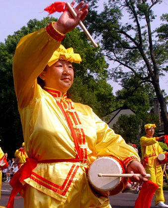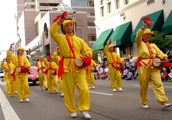 美国的立国之本是自由和民主,《独立宣言》是于七月四日签署;法轮功学员们激扬的鼓声在庆祝节日的同时也是在提醒人们,在地球另一边的中国,仍然有成千上万的法轮功学员身陷囹圄,无法象美国人这样享受最起码的人权和自由。