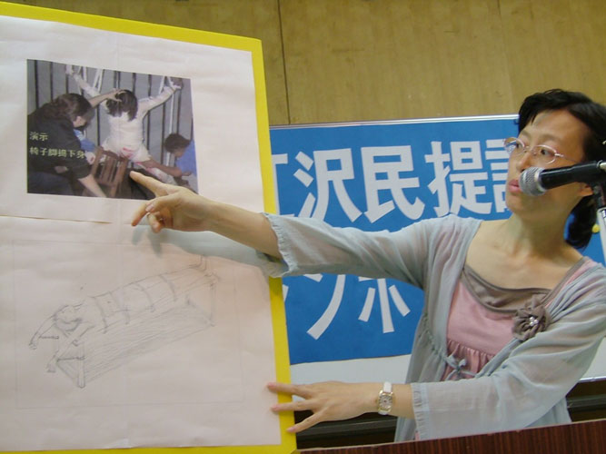 会上,日本新泻县佐渡岛居民金子容子,诉说了2002年5月,她因在北京发放法轮功真象传单,而被非法强制劳教1年6个月,被关在北京劳教所里遭受到多种惨无人道的肉体和精神摧残的经历。她说,在劳教所里,警察对她及其他法轮功学员进行洗脑转化,强行洗脑的手段很残忍,长时间不让睡觉,有的每天只让睡1、2个小时,有的24小时不让睡,甚至有的连续二十多天不让睡觉。除此之外,还有各种酷刑。在劳教所里,她还每天被迫进行长时间的劳动,生产奴工产品。从早上5点多一直要干到晚上10点左右。在这样的环境中,金子容子的健康状况变得很糟,血压越来越高,后来一段时间眼睛也看不见了……。金子容子说能安全回到日本,多亏了日本政府、全体善良的日本人民、以及全体法轮功学员的帮助;在这里,她再次向大家表示衷心的感谢。