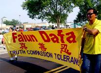 今年最为突出的亚裔团体代表仍然是法轮功队伍。来自美东南几个州的法轮功学员纷纷驱车在前一天下午长途赶来,有些要开车7~8个小时,刚刚到达,就不顾旅途疲劳和夏季南方的炎热,马上投入整队、排练。