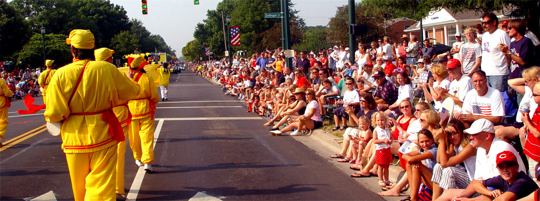 【明慧网2005年7月8日】美国的“独立日”游行是美国人民宣扬民主自由精神和多彩文化的大好时机,也是法轮功学员展示法轮大法美好的舞台。在俄亥俄州的首府哥伦布市,数年来法轮功一直是参与这一活动的唯一以亚裔为主的团体。7月1日下午和7月4日上午,法轮功学员分别参加了哥伦布市和阿普阿林顿市(Upper Arlington)的“独立日”庆祝游行。与往年不同,今年法轮功学员带给俄亥俄州人民的是中国腰鼓表演,而不是仙女舞蹈。