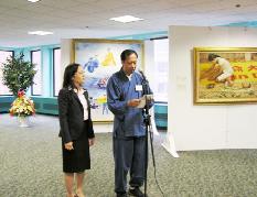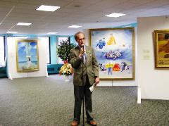 接着国家艺术俱乐部主席James Aldon发表致词,正如他在致词中讲的,国家俱乐部去年底曾举行过两次“真善忍”画展,其间收到几次电话恐吓。本着艺术应该能够自由表达的信念,James坚持“真善忍”画展如期举行,并受到当地居民的欢迎。在致词中,James高度赞扬了法轮大法弟子艺术家的艺术境界,表达了与法轮功学员交往的愉快和荣幸。