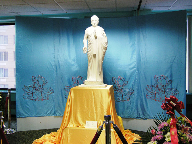 画展在联邦大楼6楼的一个有着4000平方英尺的大厅里举行,共展出了40多幅画和3个雕塑,包括油画和国画。整个展览分为四部份:第一部份是“同化大法,返本归真”,第二部份是“生命见证,正信永存”,第三部份是“传播真象,呼唤正义”,第四部份是“善恶有报,正义审判”。大厅里光线明亮柔和,佛像雕塑正对着大门,左边的巨幅画作展现着大法的美好,右边侧重于迫害,共展出了10幅左右反映发生在中国的酷刑迫害的作品。