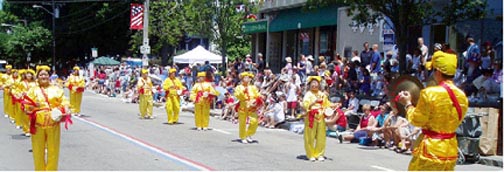 今年的独立节7月4日,风和日丽,气候宜人。罗德岛州的海滨小镇布里斯托尔不宽的马路边已坐满了几万观看今年最为古老的第220届独立日大游行的观众。遵循着二百多年古老游行的规则,体现美国人民对自由、民主精神之珍爱和感激,是这次大游行的主题。参加今年游行的几十家团体来自不同的州,其中,法轮功是唯一的一个华人团体。