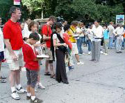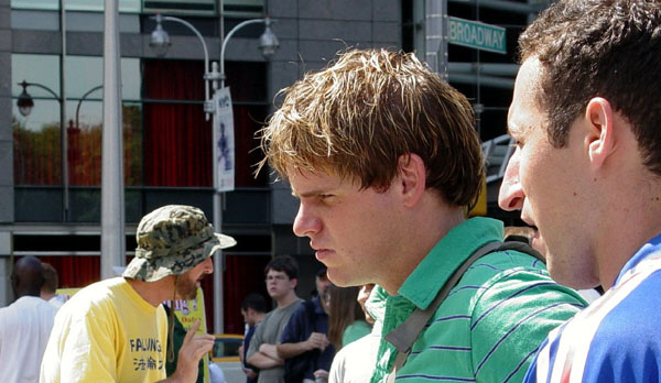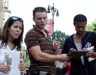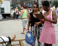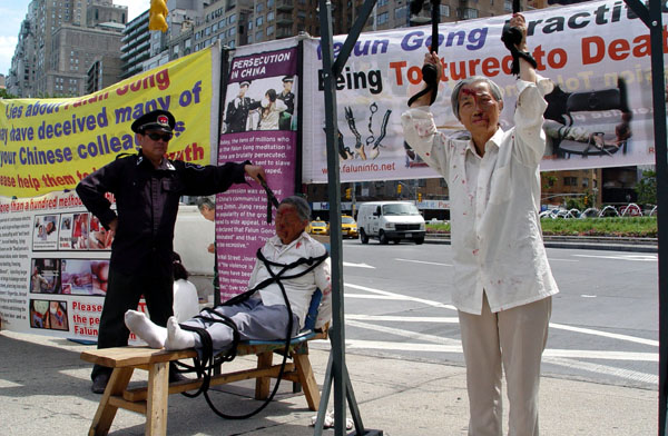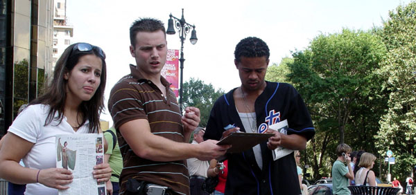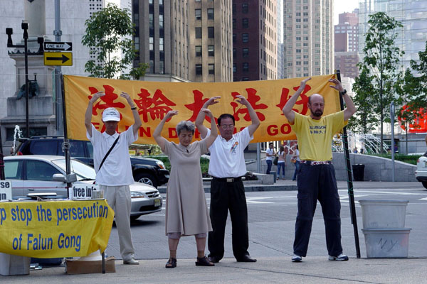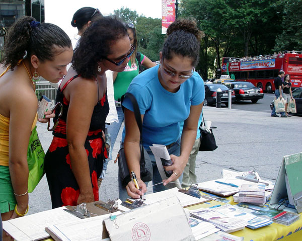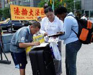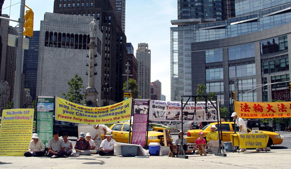 【明慧网2005年8月11日】2005年8月6日星期六早上,我们一行十二名加拿大多伦多法轮大法弟子赶到纽约曼哈顿中城59街和8大道交界处的哥伦布圆环处,向人们讲述发生在中国大陆对法轮功残酷