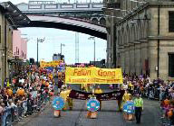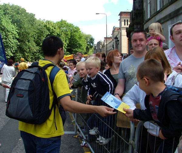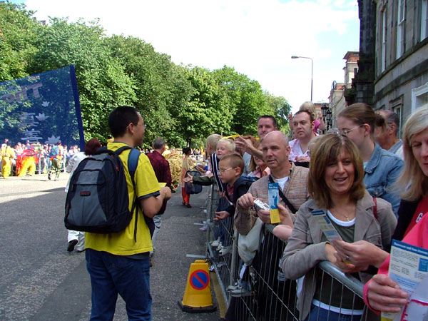 每一次活动的举行都是学员们发自内心的无私付出和努力促成的,这次艺术节大游行也是一样。有的学员在星期五下班后,不顾劳累连夜开车赶往爱丁堡参加星期六一早的舞蹈排练;有的用自己的积蓄印制了真象传单,有的买来了制作小莲花的材料;有的学员看到大家各尽所能忙碌的为游行做着准备,默默的为大家煮好一锅锅热气腾腾的方便面……