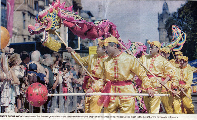 英国广播公司24小时新闻频道(BBC News 24)在当日播报了艺术节大游行中法轮功队伍及学员做功法展示的画面。爱丁堡晚报(Edinburgh Evening News)也拍摄刊登了法轮功游行队伍的图片。