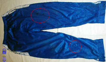 ![]() 图1为迫害时的高蓉蓉的血迹。 | ![]() 图2衣服拉锁损坏处为高蓉蓉遭恶人撕扯所致。 |