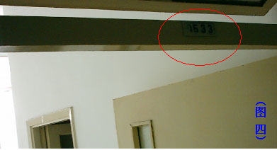 ![]() 图3为高蓉蓉遭迫害时所穿的运动裤,裤管膝盖处有血迹,右腿裤管下端有一处深深创痕,为高被迫跳楼时与地面摩擦所致。 | ![]() 图4为高蓉蓉2004年5月18日--10月5日在沈阳中国医科大学附属第一医院监紧期间所住的病房入口,门楣标有“0533” 字样,高在此饱受肉体与精神的煎熬。 |