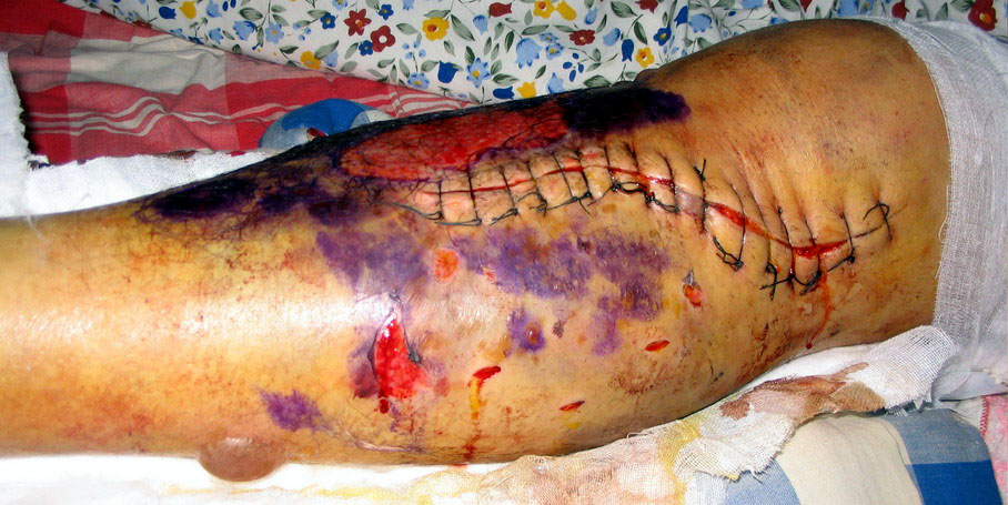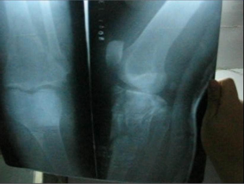 下面是焦龙的腿摔骨折后的照片。