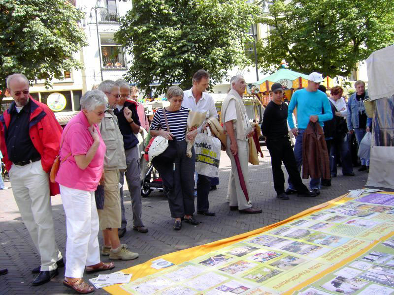 不少人第一次听到法轮功在中国被迫害的真象,他们有的表示要上网签名支持法轮功的反迫害,有的祝法轮功学员成功。有一位荷兰政府的工作人员不但自己要上网签名,还表示要把迫害真象告诉远在上海的朋友。