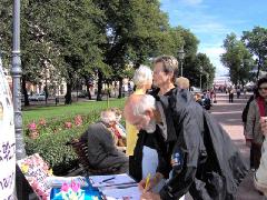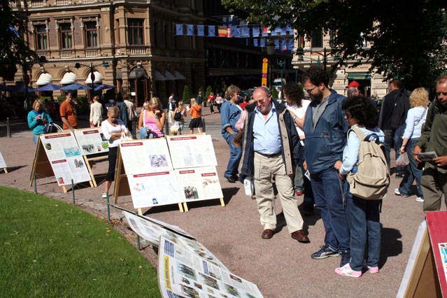 两位瑞典人问法轮功学员为什么在这里,这些(指被迫害致死的学员遗像)都是中国人吗?当得知原因并知道这些学员们来自几个不同国家时,他们说,你们做得很好。他们还说,西方社会的政府对迫害不作出反应,是因为经济利益问题,这是不对的。