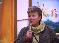 ![]() 法轮功学员卡拉女士 | ![]() 画展一角 |